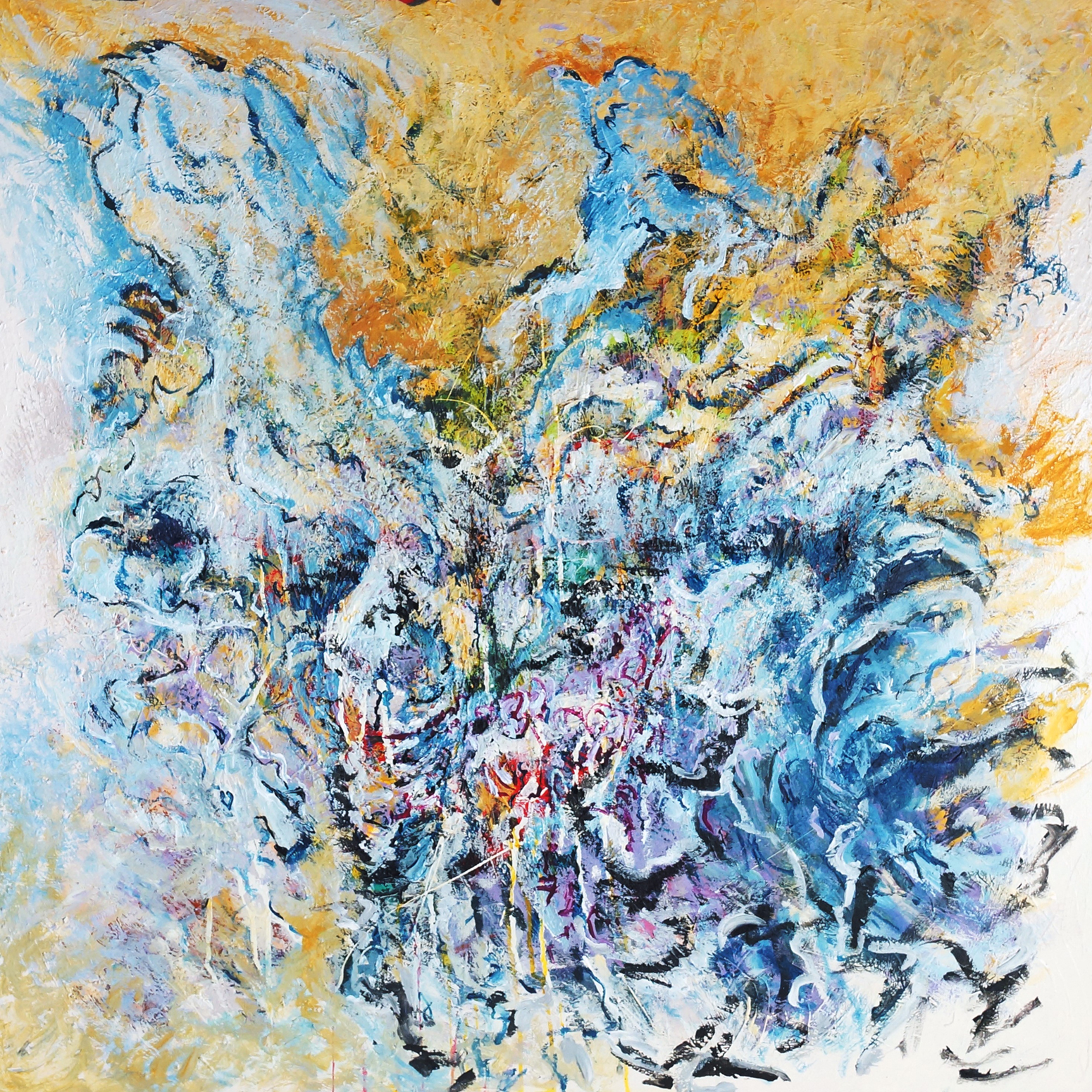 This work emerged from an exploration of gesture, layering, and the relationship between colour and movement. Here, the process itself becomes the primary carrier of meaning, while form continuously shifts and reappears through rhythm, energy, and trace.