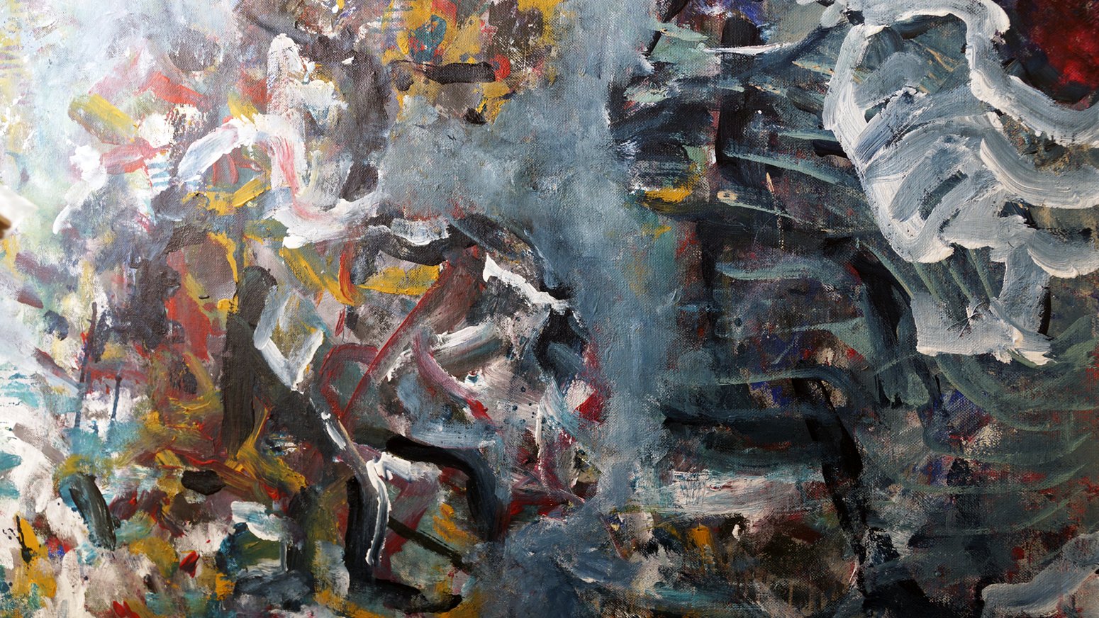 acrylic on canvas, contemporary painting, dialogue, dynamics, energy, expressive abstraction, gesture and control, layering, overlap, process-based, tension