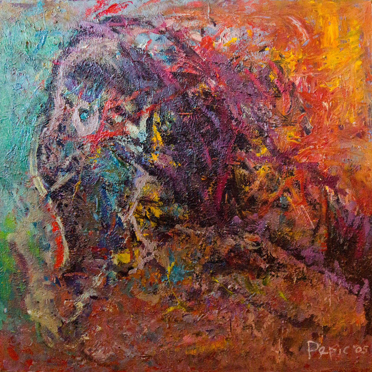 An early work created through experimentation with material, texture, and gesture. Originating from a subconscious impulse, this painting became the foundation for my later research and digital transformations.